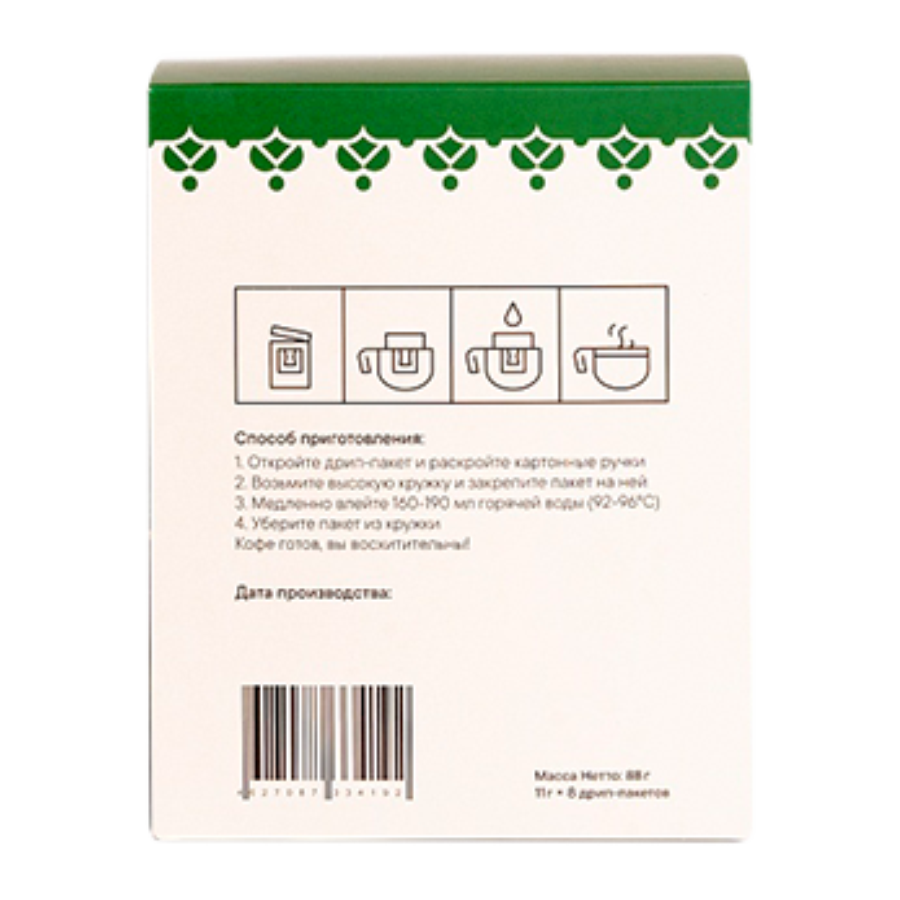 Кофе MakBush молотый в дрип пакете Brazil (8 шт*11 г)